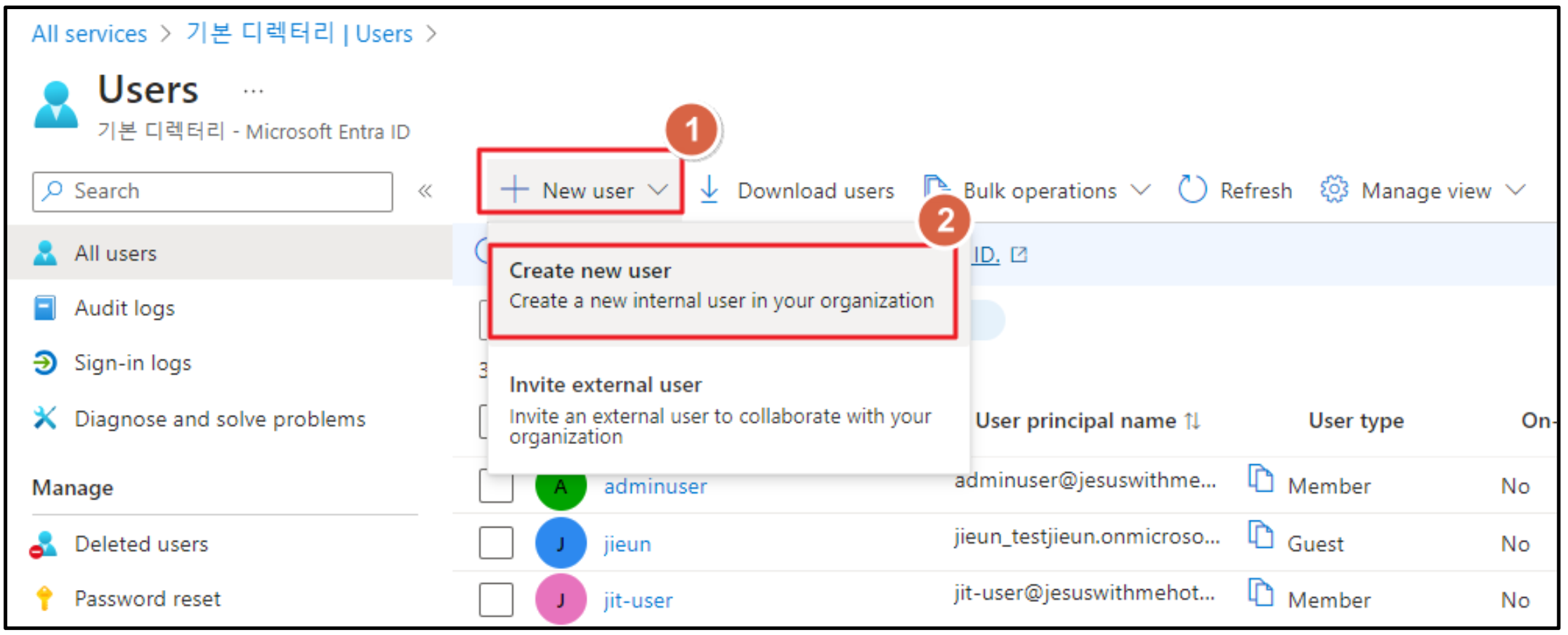 • 사내 직원들이 Azure Portal에 접속하도록 Entra ID에 사용자 계정 생성하기