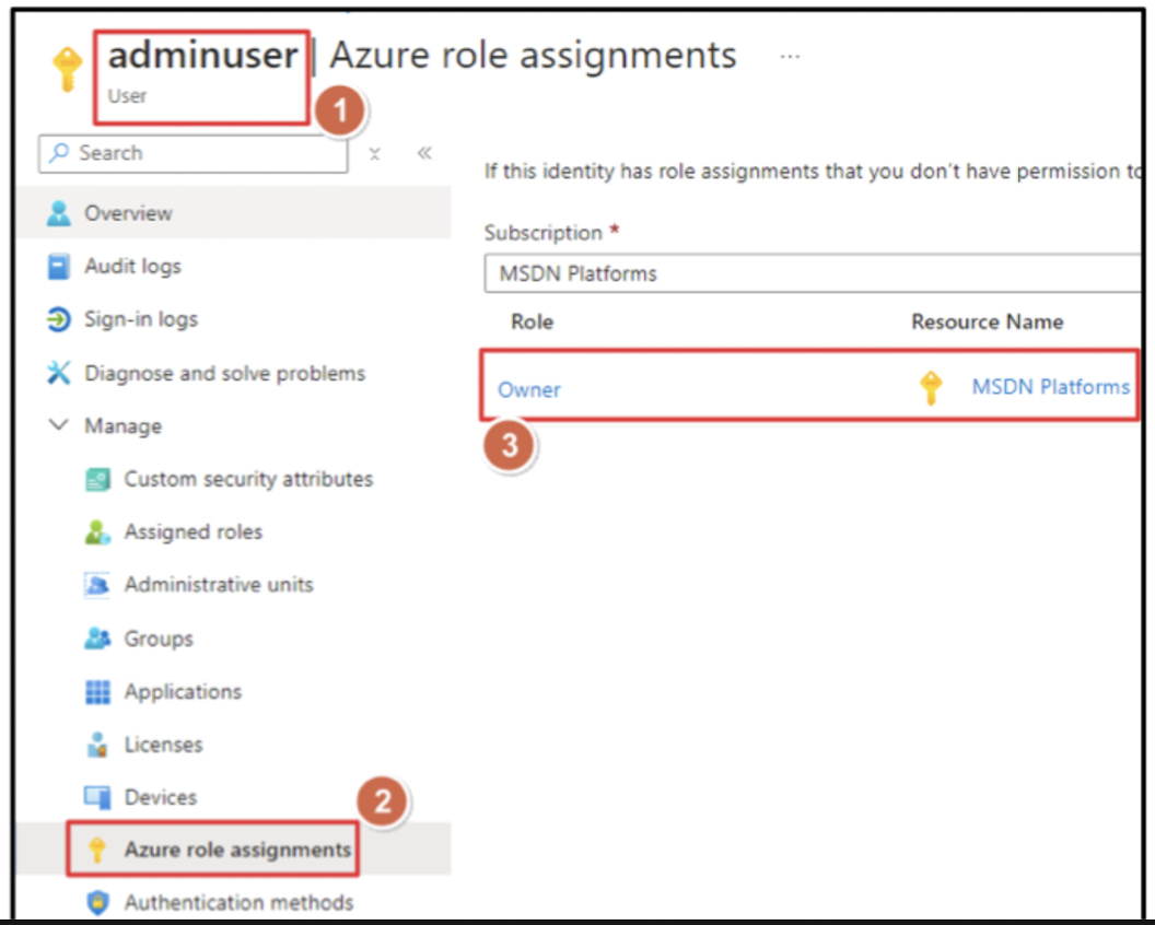 • Azure Portal의 Subscription의 Access Control(IAM)에서 Owner 역할을 azureadmin에게 부여한다