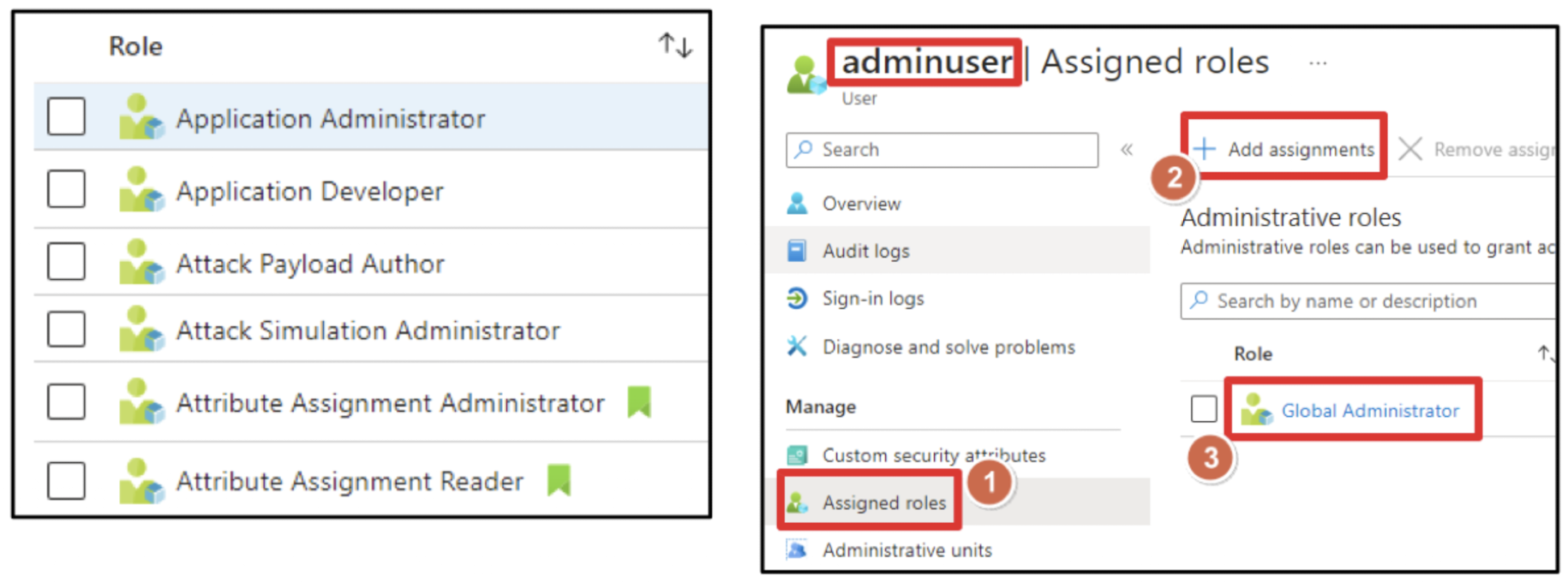 • azureadmin 계정을 만든 후에 Entra ID의 관리 위임을 위해 Global Administrator 역할(role)을 추가한다.